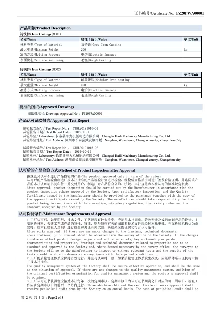 2019年通過法國BV船級(jí)社和中國船級(jí)社認(rèn)證;